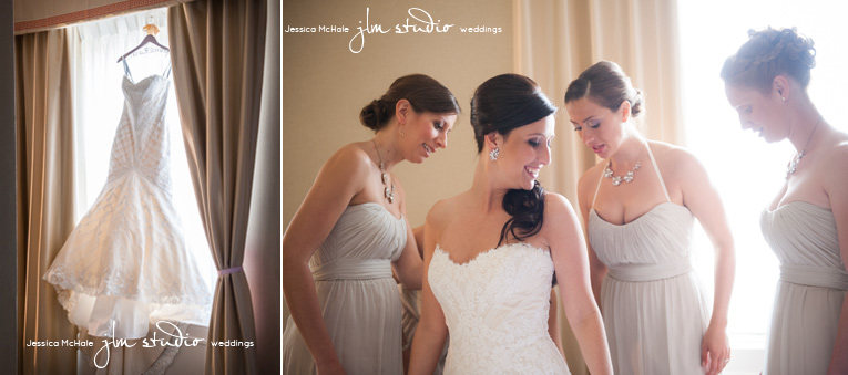 Diana and Matthew celebrated their wedding in Providence, taking time for photos at the State House and the Basin, in addition to the beautiful Biltmore Hotel. Diana chose muted blush tones for her bridal party, which looked amazing with the military uniforms of several of the groomsmen and guests.